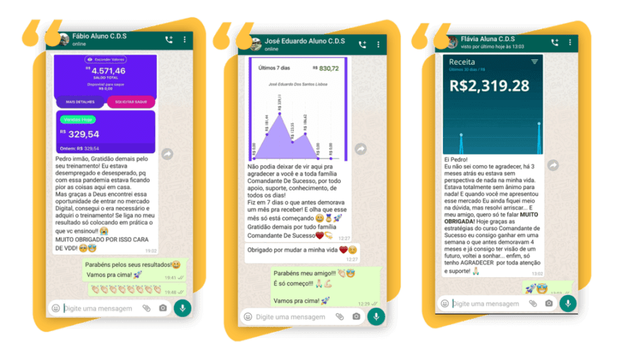 Depoimentos de Alunos do Curso Comandante de Sucesso
